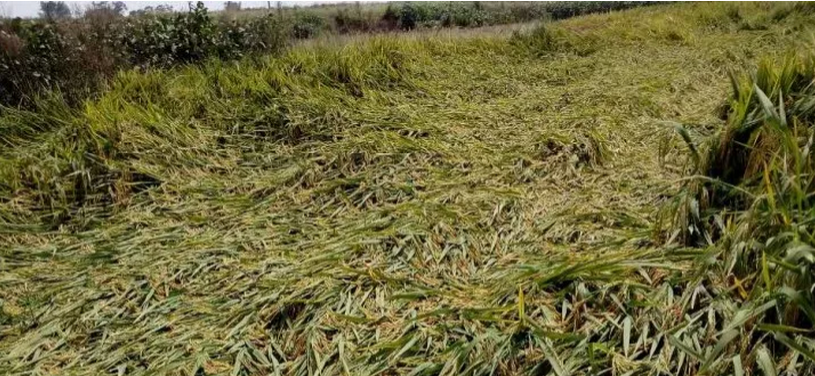 長期淹水造成土壤通氣性差,莖稈基部節(jié)間徒長,下部葉片枯死,根系發(fā)育不良及早衰,田間泥土松軟,濕度大,誘發(fā)病蟲為害,導致根基不牢,而出現(xiàn)倒伏。