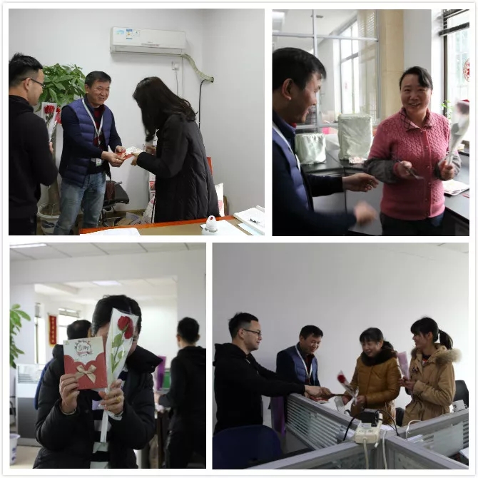 為了讓隆平女神們感受來自隆平大家庭的溫馨,營造良好的節(jié)日氣氛,3月7日,營銷支持部經(jīng)理、工會主席傅經(jīng)理、行政人事中心負(fù)責(zé)人王經(jīng)理一一走進(jìn)各辦公室為女神們送上了女神節(jié)的第一份驚喜——精心準(zhǔn)備的節(jié)日賀卡和嬌艷的玫瑰花。意外的驚喜讓女神們笑顏如花,鮮花、禮物、笑容相映成趣,為辦公室增添了又一道靚麗的風(fēng)景線。