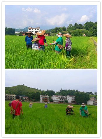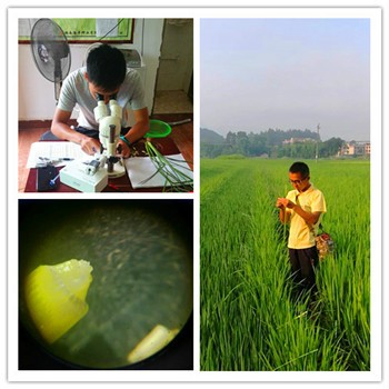 七月,在知了陣陣歡快地叫聲中,天氣一天天熱起來,夏天的味道愈發(fā)濃烈了。這是一年中最為繁忙的時候,邵懷基地的隆平生產人奔走在田間地頭,量田、繪圖、看花期、除雜、查看“920”噴施效果、趕粉,忙得不亦樂乎! 七月的田間,到處都是一片生機勃勃的景象,那排列整齊的稻苗就像訓練有素的士兵,放眼望去蔚為壯觀!生產人手持GPS行走在田埂上,盡管天氣酷熱難耐,道路崎嶇不平,但大家沒有半句怨言,步伐堅定。頭頂藍天白云,遠處翠綠的高山格外迷人,身旁不時有青蛙跳過,發(fā)出呱呱的叫聲,給原本平淡的工作增添了些許樂趣。運氣好的時候在田里還能撿到鴨蛋,這就算得上是意外的驚喜了。量完田后,借助繪圖軟件及時繪圖,為后期的隔離檢查做好準備。 七月初,綏寧兩系組合陸續(xù)進入幼穗分化,隆平生產人正忙著查看花期。分組合、分批次、分地點取樣后,借助細細的針頭在解剖鏡下一層層剝開幼葉,當幼穗出現(xiàn)的時候,我們總是興奮不已。剝檢分析讓我們心中大安:今年又將是一個豐收年。 七月的武岡,三系組合制種田里一派熱火朝天的景象,除雜工作正在進行。除雜對保障種子純度至關重要,除雜前,我們耐心地給工人們講解雜株的類型、識別方法、如何高效地除雜。當下田時,我們也不敢有絲毫懈怠,緊跟其后,對遺漏的雜株及時清理,并提醒大家再看得仔細些,確保清除到位。經過連續(xù)一個星期的奮戰(zhàn),我們終于將雜株消滅干凈。 除雜的時候,噴施“920”也在同步進行。噴施完“920”的田塊,稻穗從葉子里爭先恐后地冒出來,短短幾天就全部集結到位。天氣晴好的日子,上午10點過后,芝麻粒大小的花粉陸續(xù)從谷殼里冒出,不一會兒就聚成一團,顯得格外熱鬧,正午時花開得最盛,空氣中彌漫著花粉的清香,深吸一口氣頓時讓人神清氣爽,這時也是趕粉的最佳時期。由于花粉存活的時間很短,水稻開花后要及時趕粉,在陽光正盛的時候,大家兩人一組拉著繩子的兩端,齊頭并進,把父本的花粉拉到母本柱頭上完成授粉。授完粉,再過十多天,田里的稻子就成熟了,我們將迎來一年的豐收,那也是隆平生產人一年中最幸福的時刻! 一路走來,伴隨田里的水稻一點點地長大:生根、發(fā)芽、開花、結果,我們在這個過程中不斷學習、成長,對制種事業(yè)的熱愛日漸濃厚,更加堅定了未來的奮斗方向:在今后的生產工作中,隆平生產人將繼續(xù)發(fā)揚腳踏實地的工作作風,不斷迎接新的挑戰(zhàn),開創(chuàng)制種事業(yè)新輝煌!
