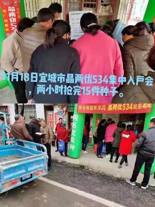 11月18日,宜城市晶兩優(yōu)534集中入戶會(huì),兩小時(shí)搶完15件種子。