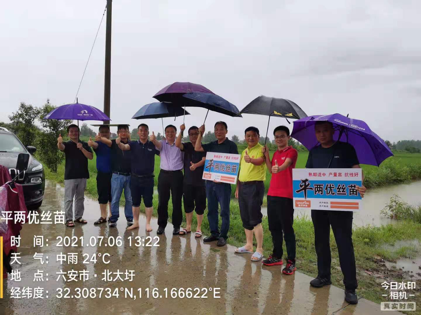 7月6日,楊總一行在安徽霍邱查看平兩優(yōu)絲苗省級展示。