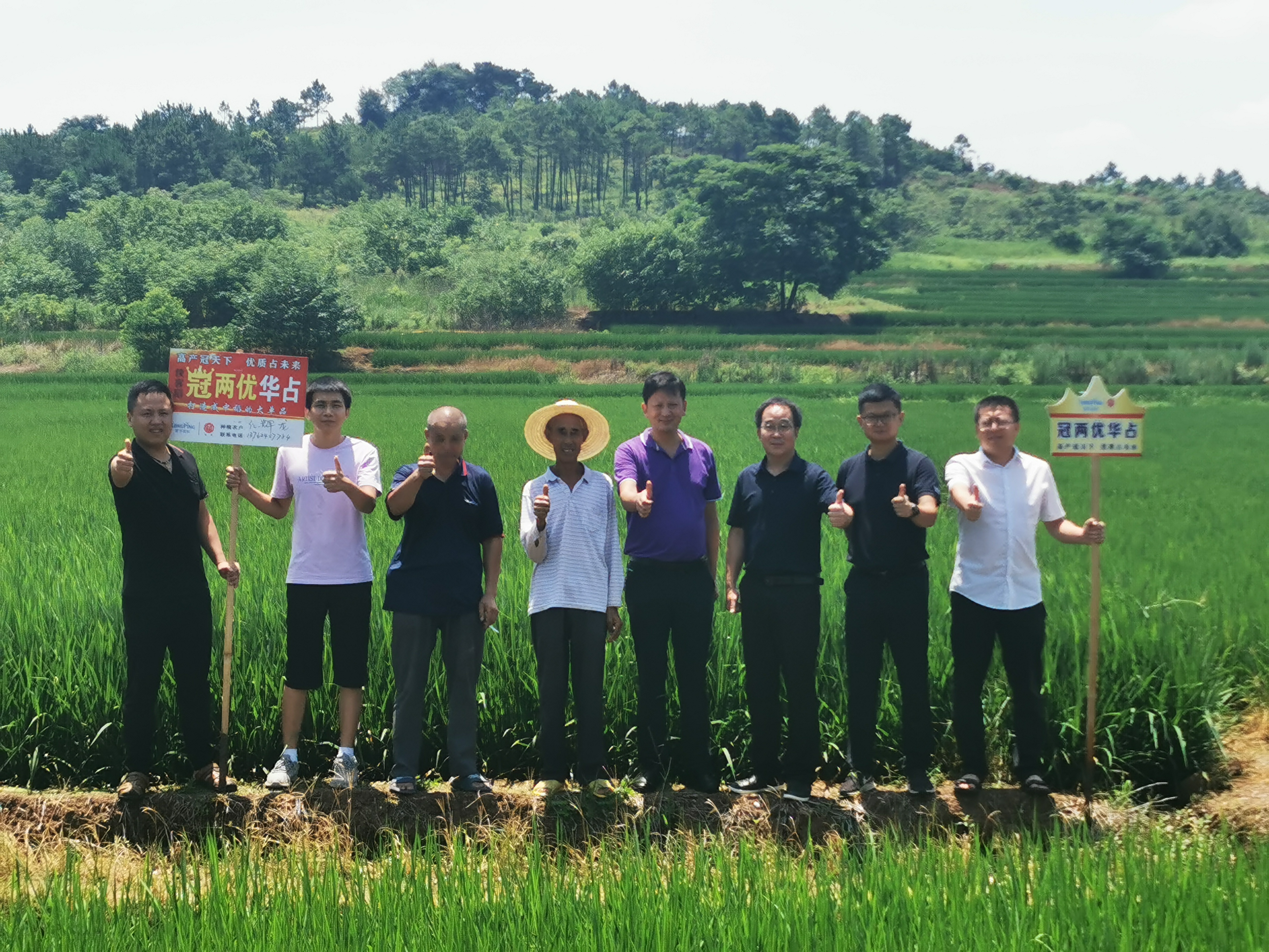 7月6日,譚總一行在湖南衡南查看冠兩優(yōu)華占省級展示片。