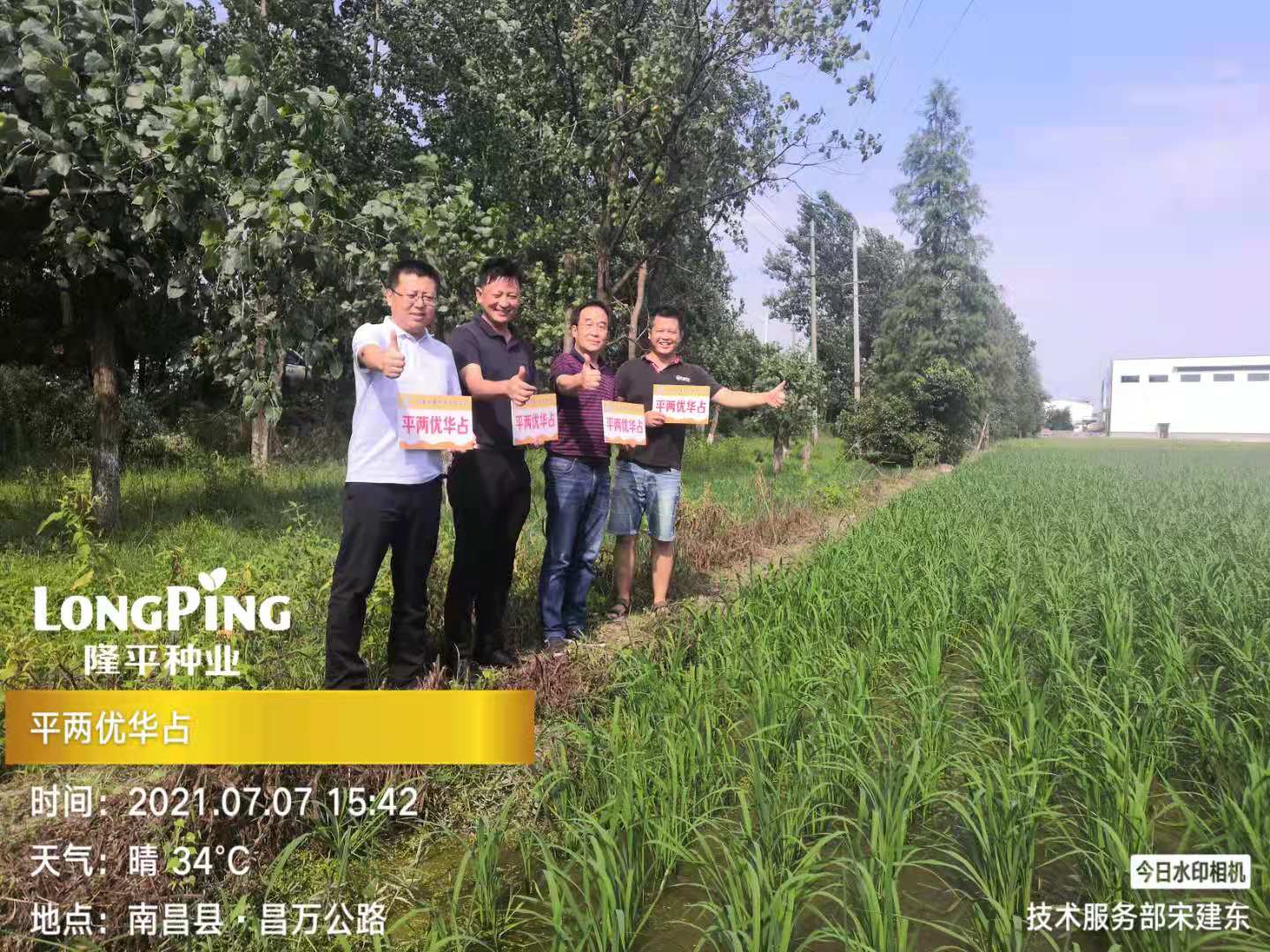 7月7日,譚總一行在江西南昌查看平兩優(yōu)華占省級展示片。