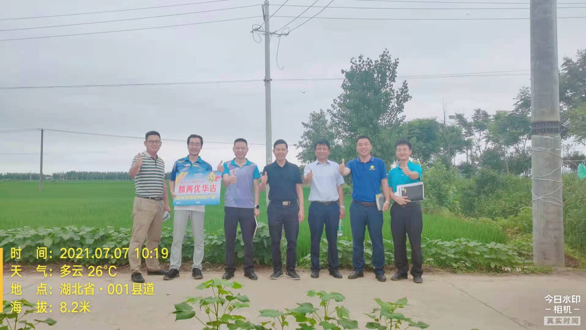 7月7日,廖總一行在湖北天門查看麟兩優(yōu)華占省級展示片。