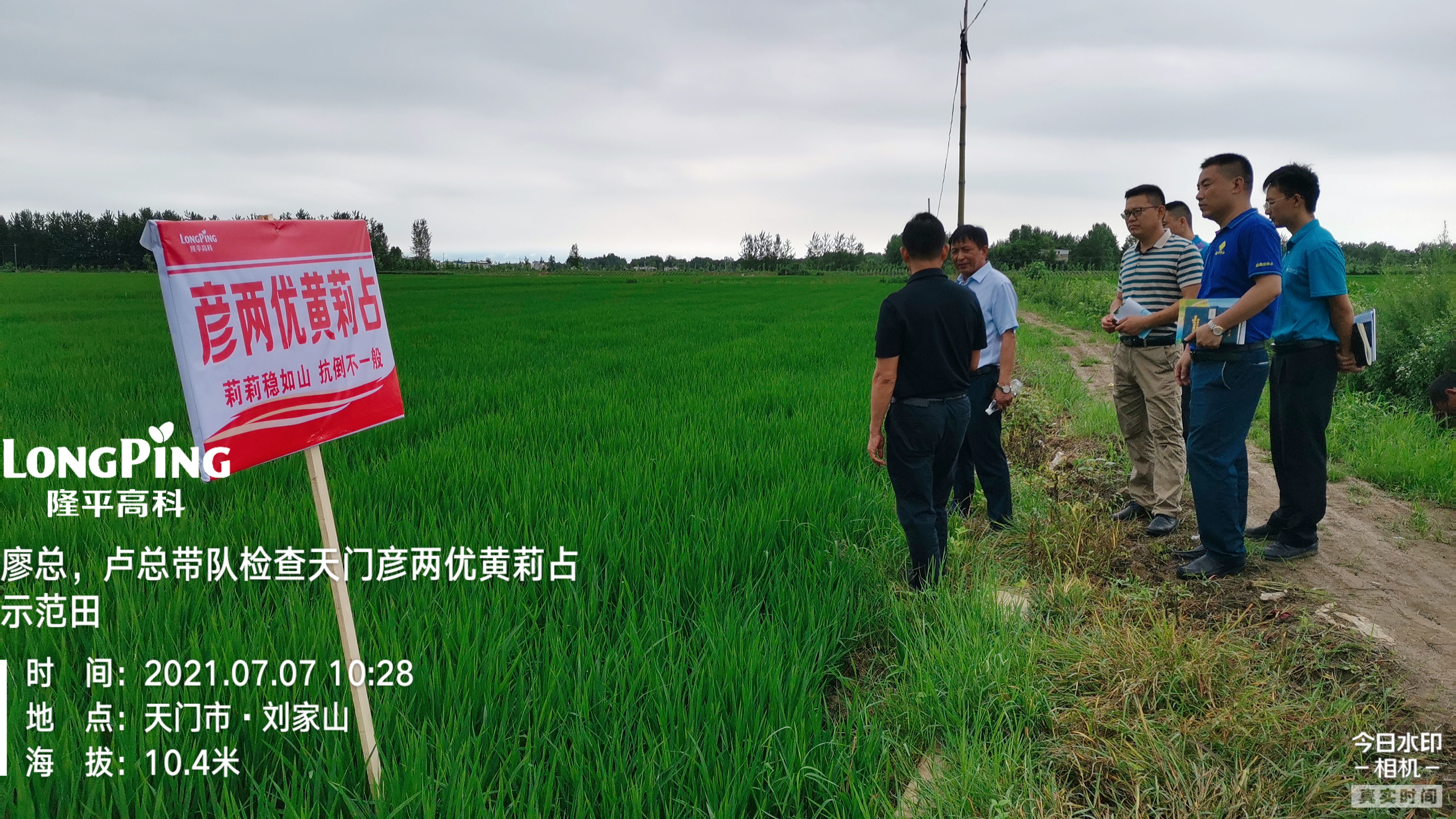 7月7日,廖總一行在湖北天門查看彥兩優(yōu)黃莉占省級展示片。