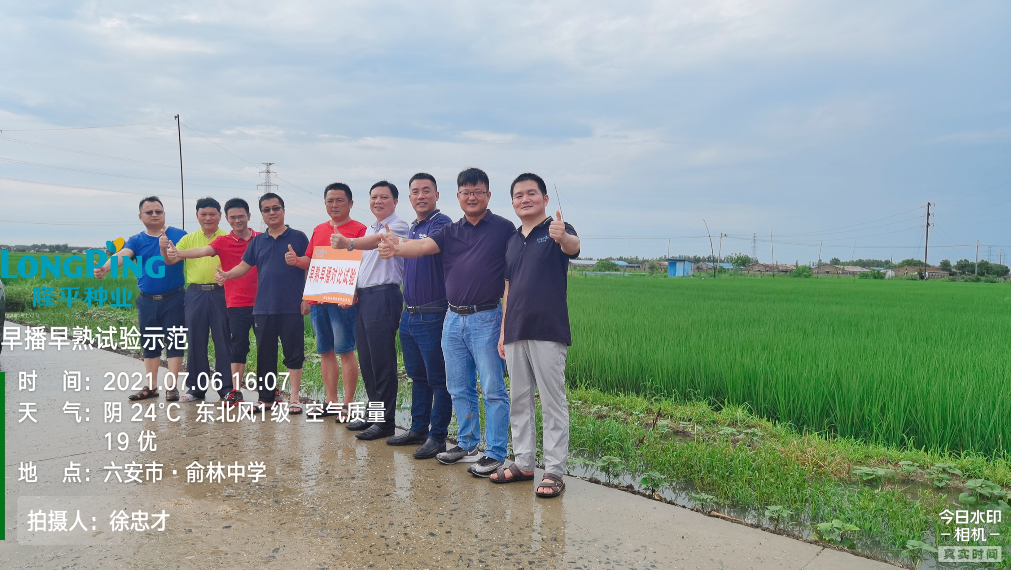 7月6日,楊總一行在安徽霍邱查看早播早熟優(yōu)質(zhì)中稻試驗。