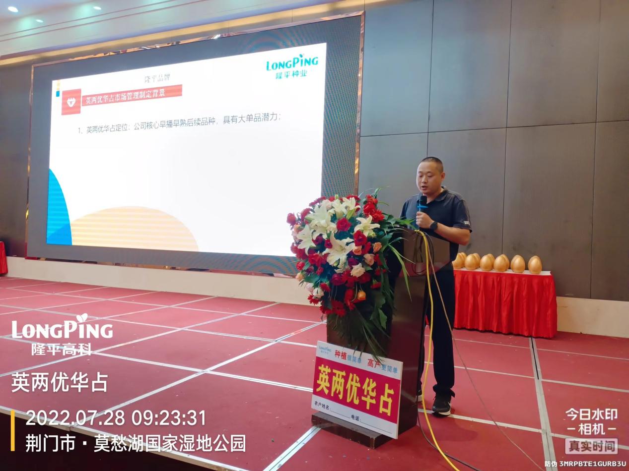 7月28日,240余位種業(yè)營銷翹楚齊聚歷史文化名城鐘祥,在景色秀麗的莫愁湖國際大酒店參加湖南隆平種業(yè)2022-2023年度鄂豫兩省英兩優(yōu)華占觀摩暨招商會。此次盛會,我們邀請到隆平品牌負責人、湖南隆平種業(yè)總經(jīng)理助理黃年豐先生,隆平品牌湖北銷售中心總經(jīng)理亓琳濤先生,晶隆品牌湖北銷售中心總經(jīng)理兼河南事業(yè)部總經(jīng)理汪恒濤先生,河南事業(yè)部隆平民生銷售中心總經(jīng)理胡鵬先生,技術服務部何奇老師等嘉賓。作為隆平種業(yè)獨家運作全新品系,公司將匯聚八方營銷精英傾力打造,再續(xù)王者風范,再創(chuàng)種業(yè)傳奇。