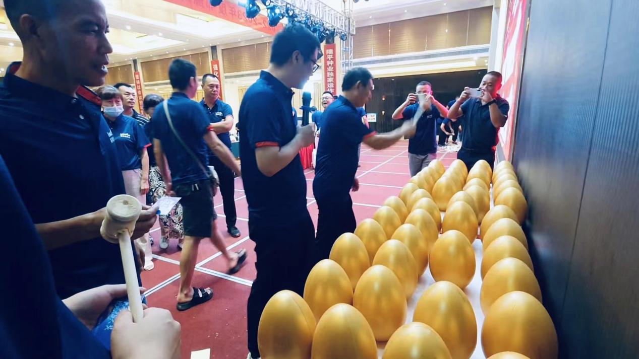 緊接著,公司為了激發(fā)現(xiàn)場營銷精英積極投入到英兩優(yōu)華占推廣事業(yè)當中,開展了隆重的砸金蛋活動。各縣市的合作伙伴踴躍打款,爭取砸金蛋名額。