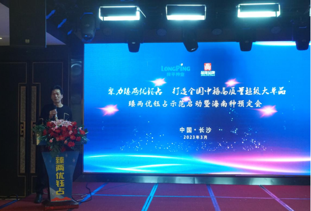 2023年3月5日,來自湖南、湖北、江西三省的優(yōu)秀客戶代表及渠道商、糧貿企業(yè)共150多人齊聚星城長沙,參加了湖南隆平種業(yè)晶隆品牌召開的臻兩優(yōu)鈺占示范啟動暨海南種預定會議。