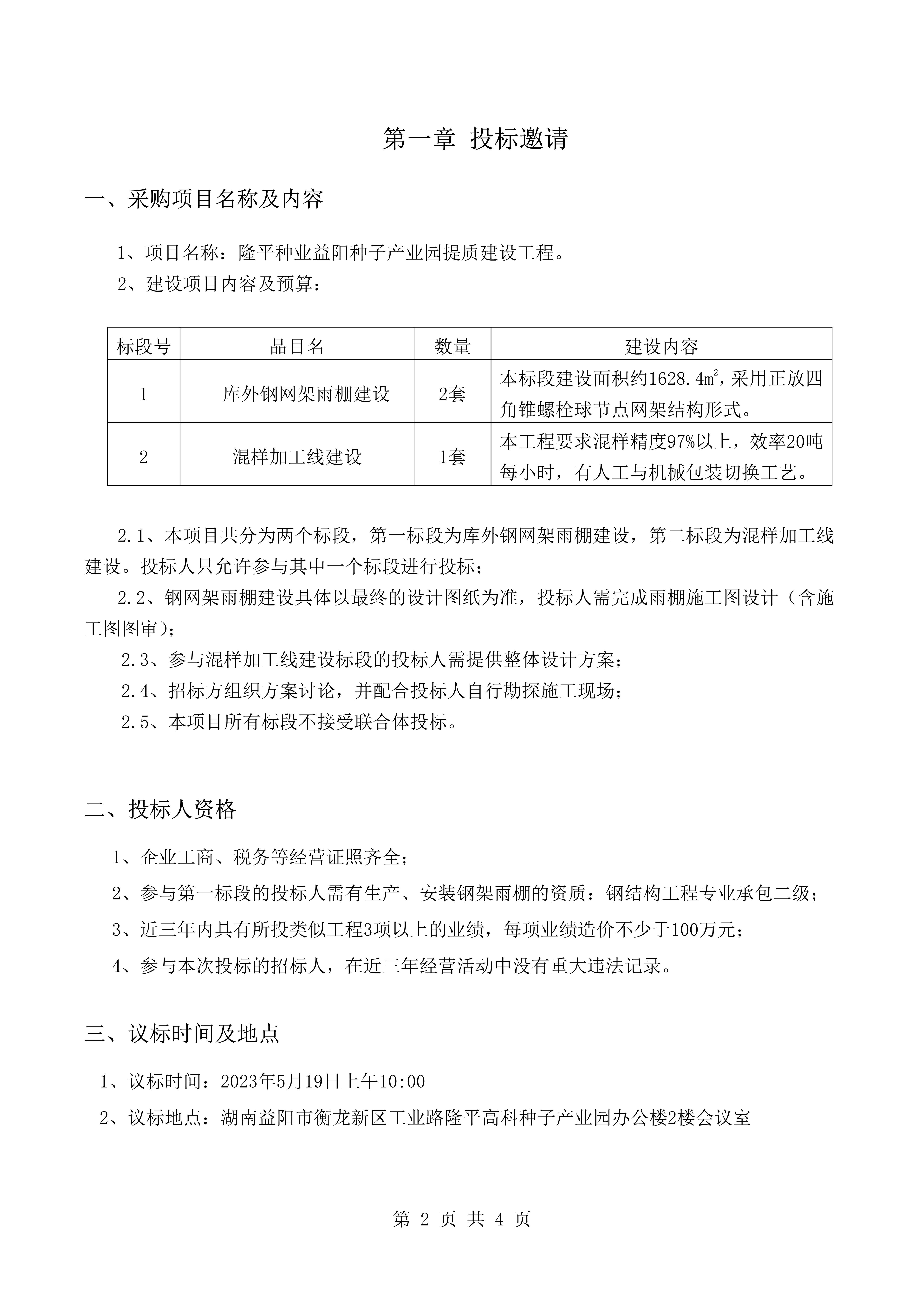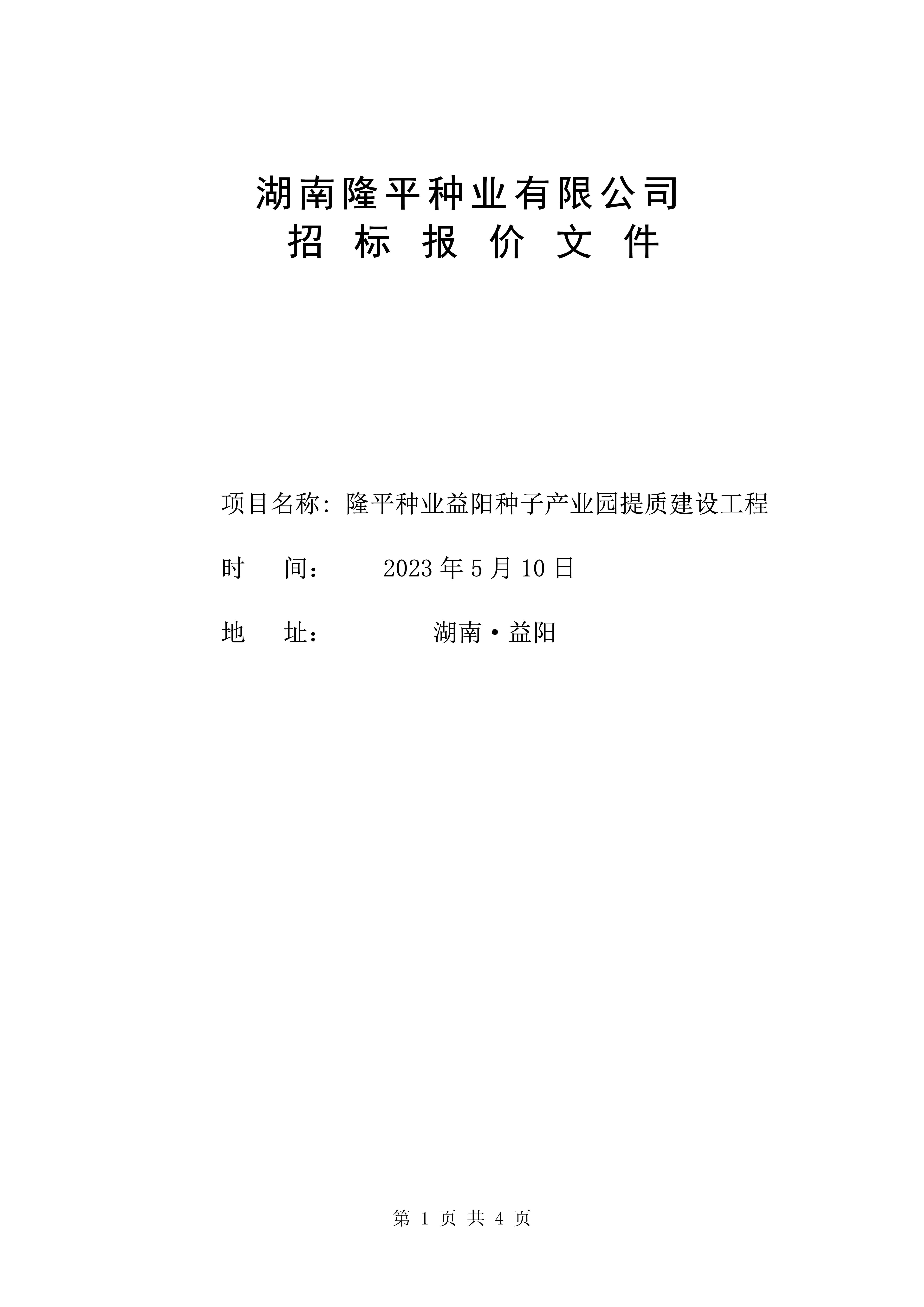 隆平種業(yè)益陽種子產(chǎn)業(yè)園提質(zhì)建設(shè)工程招標公告