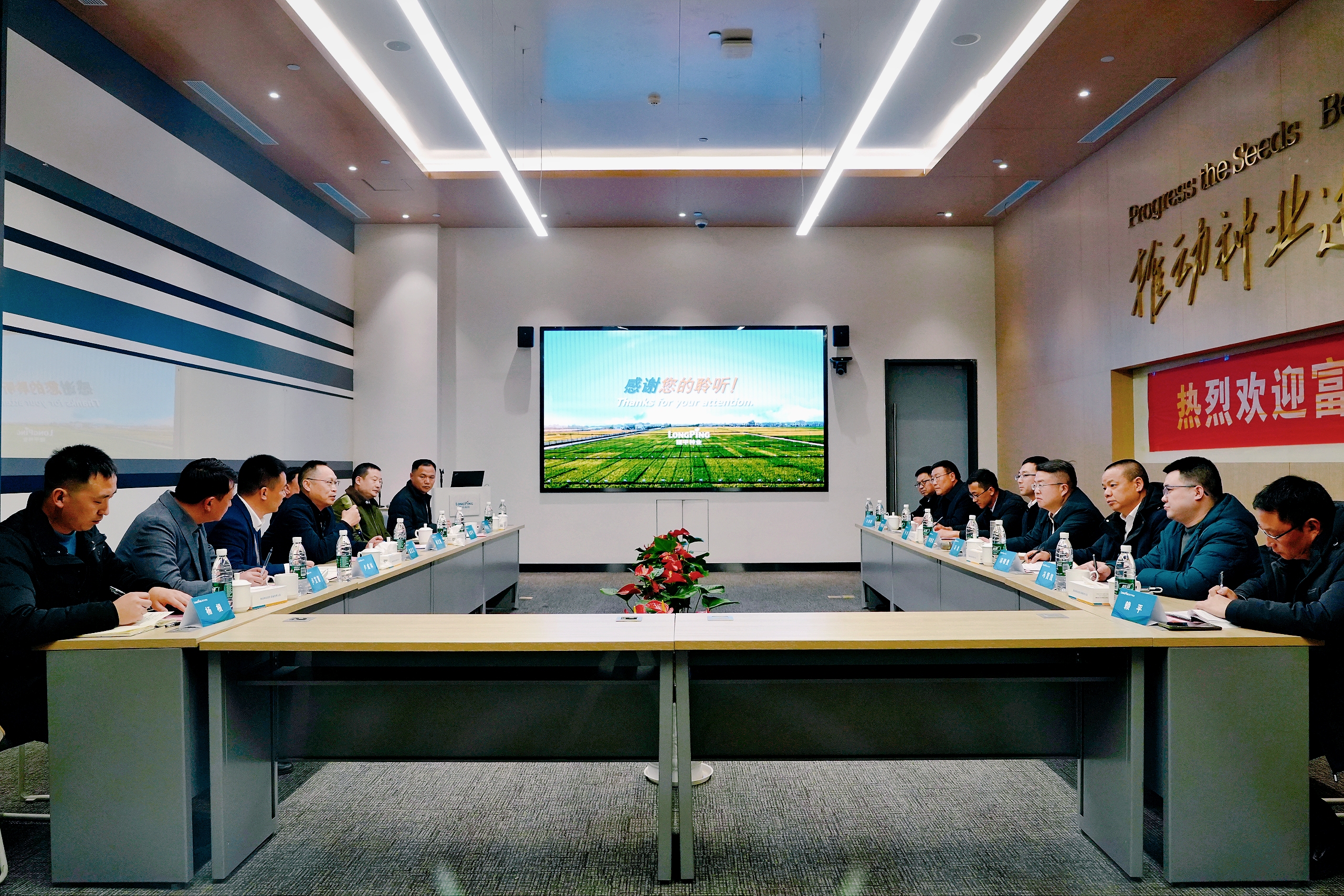 2月27日下午,富順縣委副書記、縣長馮君,副縣長劉堯洪率縣農業(yè)農村局、國防動員辦、投資促進局負責人等一行蒞臨隆平種業(yè)調研,隆平高科監(jiān)事會主席、隆平種業(yè)董事長袁定江,隆平水稻事業(yè)部副總經(jīng)理楊文星,隆平種業(yè)總經(jīng)理盧成林攜公司經(jīng)營班子成員、西南區(qū)域負責人等參加座談交流。