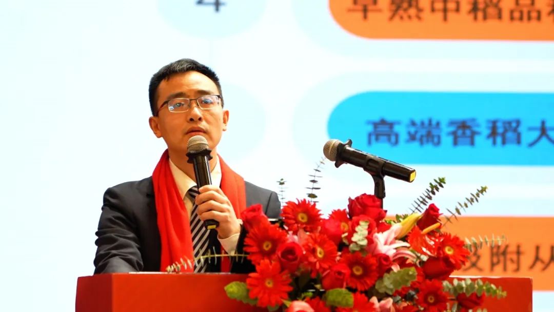 優(yōu)秀的品種是隆平事業(yè)長青的基石。大會(huì)首先由隆平高科副總裁、水稻首席專家、種業(yè)科學(xué)院院長楊遠(yuǎn)柱作《守正創(chuàng)新推出系列新品種 颶星閃耀引領(lǐng)隆平新發(fā)展》分享,楊院長通報(bào)了種業(yè)科學(xué)院當(dāng)前品種選育進(jìn)展,展示了公司強(qiáng)大的科研能力,并重點(diǎn)解讀了隆平種業(yè)獨(dú)家運(yùn)作的第五代大品系——颶兩優(yōu)系列品種的選育情況、特征特性及優(yōu)勢(shì)。楊院長充分肯定了公司颶兩優(yōu)系列及其他系列品種的市場(chǎng)價(jià)值,豐富的品種資源,進(jìn)一步堅(jiān)定了客戶與公司的信心。