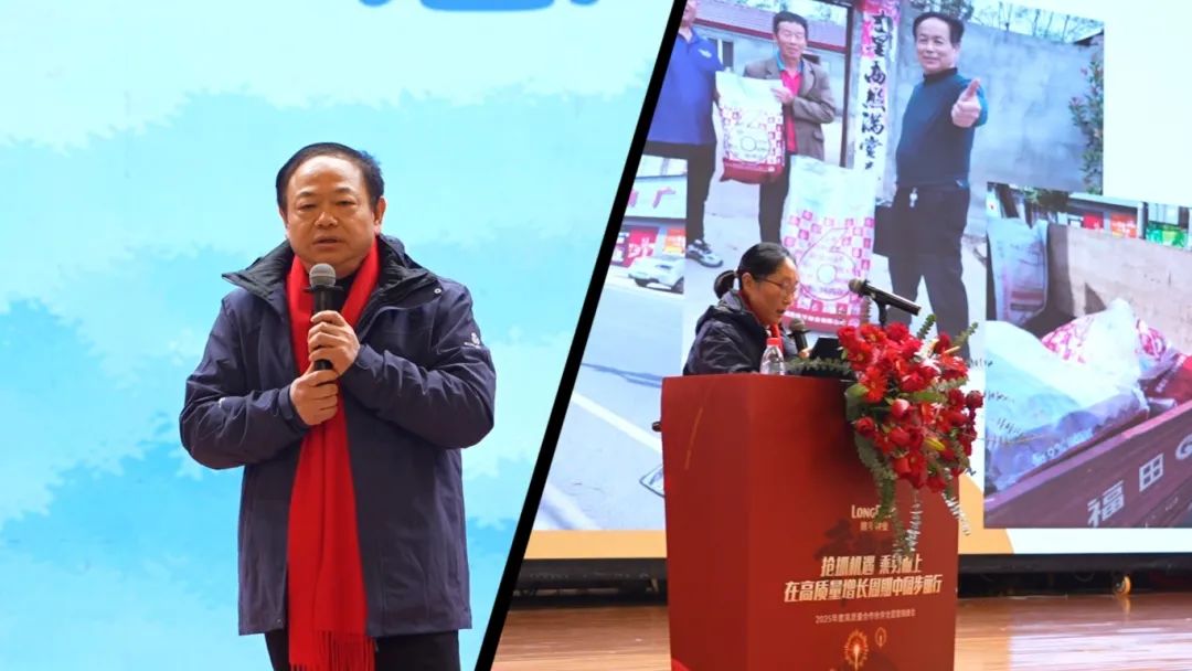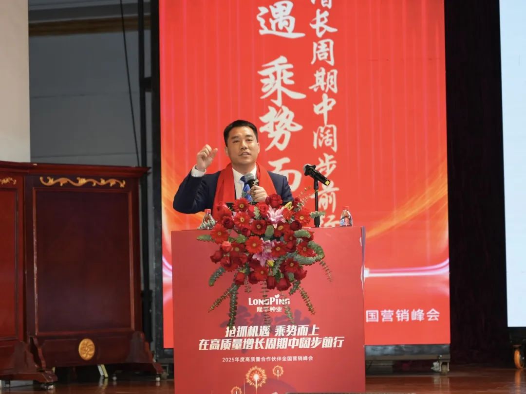 會(huì)議最后,隆平種業(yè)總經(jīng)理盧成林作《搶抓機(jī)遇 乘勢(shì)而上 在高質(zhì)量增長周期中闊步前行》主題報(bào)告。盧總表示,今天會(huì)議的各項(xiàng)分享充分彰顯了隆平種業(yè)擁有一支強(qiáng)大的代理商隊(duì)伍和員工隊(duì)伍,當(dāng)前公司品種資源達(dá)到歷史最強(qiáng),颶兩優(yōu)系列高質(zhì)量運(yùn)作模式得到市場(chǎng)高度認(rèn)可。同時(shí),盧總指出,過去一年公司各項(xiàng)指標(biāo)實(shí)現(xiàn)了高質(zhì)量增長,颶兩優(yōu)系列運(yùn)作模式取得巨大成功,種糧一體化運(yùn)作、大單品核心市場(chǎng)基本盤穩(wěn)定、早熟中稻市場(chǎng)布局等方面都取得了優(yōu)異成績。盧總強(qiáng)調(diào),“中國種業(yè)的領(lǐng)跑者 農(nóng)業(yè)服務(wù)的旗幟”是公司的愿景和定位,隆平種業(yè)有責(zé)任、有義務(wù)、有能力、有實(shí)力引領(lǐng)行業(yè)發(fā)展,公司將持續(xù)構(gòu)建體系化競(jìng)爭(zhēng)優(yōu)勢(shì),與全體合作伙伴一起打破行業(yè)內(nèi)卷。就2025年度工作,明確了舉全公司之力快速將颶兩優(yōu)系列打造成高質(zhì)量大品系、深入推進(jìn)種糧一體化、加大早熟市場(chǎng)、高端優(yōu)質(zhì)稻等細(xì)分市場(chǎng)的快速突破等工作目標(biāo)。