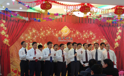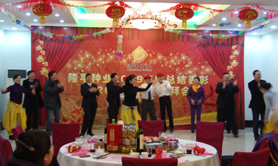 總結(jié)表彰后,公司員工還自編自導(dǎo)了多個(gè)精彩紛呈的文藝節(jié)目。各部門、分子公司員工的詩朗誦、獨(dú)唱、大合唱以及啞劇和舞蹈都贏得了現(xiàn)場(chǎng)觀眾的陣陣掌聲。節(jié)目最后,全體與會(huì)高管上臺(tái)參與舞蹈《印度新娘》,將活動(dòng)推上了高潮。
