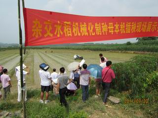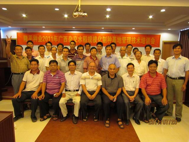 7月20日,生產(chǎn)中心廣西基地2011年雜交水稻規(guī)?;品N管理技術(shù)培訓(xùn)暨母本機(jī)插秧制種現(xiàn)場展示會在廣西南寧成功舉行,來自廣西生產(chǎn)基地的生產(chǎn)商和技術(shù)員及江西、廣東的生產(chǎn)商代表共35人參加了培訓(xùn)。