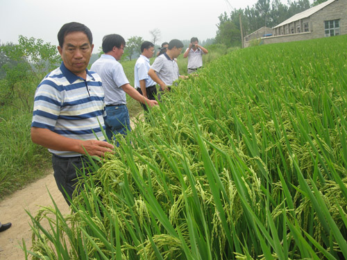觀摩會(huì)期間,鄧啟云(Y兩優(yōu)1號(hào)的選育者)和鄧小林(兩優(yōu)1128的選育者)兩位研究員特意中午不休息,趕赴公司羅山縣代理商安排的農(nóng)戶自主栽培的示范點(diǎn),現(xiàn)場(chǎng)考察Y1和1128的田間長(zhǎng)勢(shì),非常滿意這兩個(gè)品種的田間表現(xiàn)。