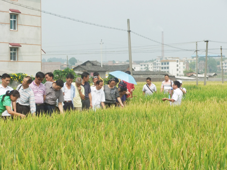 現(xiàn)場(chǎng)洞口縣種子公司唐毅經(jīng)理語(yǔ)出“我終于找到了我需要的品種---兩優(yōu)2469啊。我賣(mài)別的品種多年,但是在洞口部分地方生育期長(zhǎng)了一點(diǎn),山區(qū)水利條件差,一直在尋找該類(lèi)型早熟、豐產(chǎn)型品種,該品種熟期早的好啊,正好適合農(nóng)民需要---早成熟早收割,少投入少操心,高產(chǎn)量高效益。”
