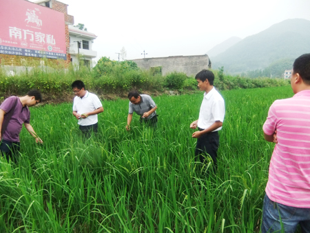 8日上午,婁邵代理商現(xiàn)場觀摩了彭明義的示范基地,交流了搞好示范基地的經(jīng)驗及總結(jié)失敗的教訓。下午,來到雙峰縣沙塘鄉(xiāng)觀摩準兩優(yōu)608再生稻基地。“多聞不如一見,準兩優(yōu)608再生能力真的強。”現(xiàn)場婁邵區(qū)域經(jīng)理朱永桂進行準兩優(yōu)608再生稻粒數(shù)競猜,再生稻穗粒數(shù)達到189粒之多,預計實際畝產(chǎn)600斤以上。