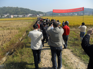 上午,全體參會(huì)人員于衡陽(yáng)市衡東縣參觀準(zhǔn)兩優(yōu)608示范田。該示范田為衡東縣新塘鎮(zhèn)公司的準(zhǔn)兩優(yōu)608品種百畝示范驗(yàn)收片,為全省3個(gè)重點(diǎn)國(guó)家級(jí)水稻新品種雙季稻展示示范基地之一。準(zhǔn)兩優(yōu)608作為準(zhǔn)超級(jí)稻,具有穗大粒足、米質(zhì)優(yōu)、超高產(chǎn)、適應(yīng)范圍廣、再生能力強(qiáng)等優(yōu)質(zhì)特點(diǎn)。據(jù)證實(shí),該品種在當(dāng)?shù)仄骄a(chǎn)量均在