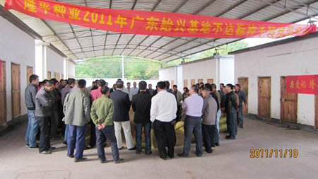 會(huì)議由我司廣東基地負(fù)責(zé)人陳述洪經(jīng)理主持,馬市鎮(zhèn)鎮(zhèn)黨委書記鐘萬(wàn)年、生產(chǎn)商袁國(guó)正、我司生產(chǎn)中心副經(jīng)理鄧波分別就此次種子轉(zhuǎn)商的意義及隆平質(zhì)量理念與要求等作了重要講話。