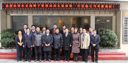 2月17日,農(nóng)業(yè)部種子管理局局長(zhǎng)張延秋率綜合處處長(zhǎng)吳曉玲、市場(chǎng)監(jiān)管處副調(diào)研員張冬曉到公司考察指導(dǎo)工作。省農(nóng)業(yè)廳副廳長(zhǎng)李志純、省種子管理局局長(zhǎng)周志魁等領(lǐng)導(dǎo)一同考察了公司。隆平高科董事長(zhǎng)伍躍時(shí)、總裁顏衛(wèi)彬,公司總經(jīng)理廖翠猛等領(lǐng)導(dǎo)陪同考察。
