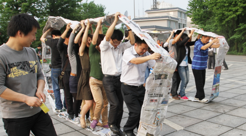 置身于綠意盎然、空氣清新的岳麓山,我們沿著蜿蜒的山路,一路談笑風(fēng)生。每前進(jìn)一步,就離山頂更近一步,離城市的喧囂更遠(yuǎn)一步。經(jīng)過(guò)一個(gè)多小時(shí)的跋涉,我們所有人都到達(dá)了岳麓山之巔,整座城市盡收眼底,頗有“一覽眾山小”的感覺(jué)。經(jīng)過(guò)短暫休整,團(tuán)隊(duì)活動(dòng)開始了。大家隨機(jī)分成了“無(wú)敵風(fēng)火隊(duì)”和“先鋒隊(duì)”,每隊(duì)都選出了自己的隊(duì)長(zhǎng)以及口號(hào)。“無(wú)敵風(fēng)火輪”這一注重團(tuán)隊(duì)合作又充滿趣味性的游戲一下子把大家的積極性帶動(dòng)起來(lái);之后,“坐地起身”游戲又使整個(gè)團(tuán)隊(duì)活動(dòng)到達(dá)另一高潮。游戲勝負(fù)是浮云,我們收獲的是友誼、是團(tuán)隊(duì)精神、是快樂(lè)。