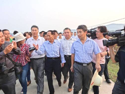 9月19日,安徽省六安市霍山縣的4008s/1128百畝高產(chǎn)示范田里,洋溢著豐收的喜悅。中國雜交水稻育種專家、雜交水稻之父、中國工程院院士袁隆平來到霍山縣超級雜交稻高產(chǎn)攻關(guān)示范點視察。市縣領(lǐng)導(dǎo)束學(xué)龍、權(quán)俊良等陪同視察。