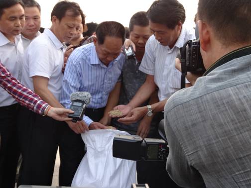 袁隆平來到下符橋鎮(zhèn)沈家畈村超級雜交稻高產(chǎn)攻關(guān)示范點,深入田間地頭,實地查看了超級雜交稻生長情況,并聽取了相關(guān)情況介紹。袁隆平對該縣超級雜交稻高產(chǎn)攻關(guān)工作進(jìn)展十分滿意,他指出,霍山縣委、政府高度重視,農(nóng)業(yè)部門大力支持和配合,認(rèn)真細(xì)致制定了攻關(guān)方案,扎實抓好試驗各個環(huán)節(jié)工作落實,在地處平原,海拔僅有60余米,晝夜溫差小的自然條件下,能有如此長勢,是非常難得的。該縣超級雜交稻高產(chǎn)攻關(guān)試驗點總面積121.16畝,目前,收割測產(chǎn)工作正在進(jìn)行中。