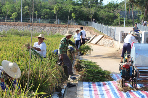 2013年5月13日,海南三亞,天氣晴朗。在袁隆平院士的組織下,來自海南水稻所、湖南雜交水稻研究中心、國(guó)家南繁辦辦公室、三亞市南繁科學(xué)院、海南南繁質(zhì)檢站等5家單位的專家組成驗(yàn)收小組,蒞臨我司高產(chǎn)示范基地,對(duì)我司自主選育的“第四期超級(jí)稻”攻關(guān)品種“深08S/R1813”進(jìn)行現(xiàn)場(chǎng)測(cè)產(chǎn)。