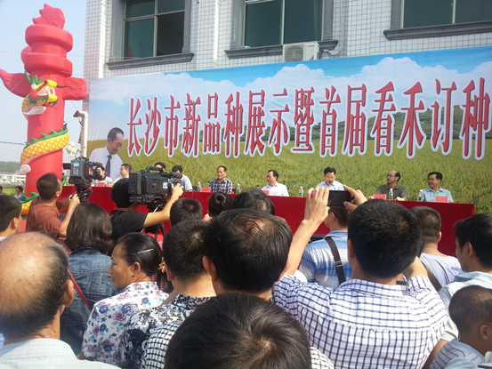 9月16日,長沙市種子管理站在瀏陽市淳口鎮(zhèn)的農(nóng)作物品種展示基地召開了雜交水稻新品種觀摩會,有湖南隆平種業(yè)、湖南亞華種業(yè)、湖南科裕隆種業(yè)、湖南希望種業(yè)等36家種子企業(yè)的新品種參加展示。長沙市農(nóng)業(yè)局、長沙市種子行業(yè)協(xié)會、瀏陽市委、各參展種子企業(yè)以及長沙市各地種子經(jīng)銷商參加了觀摩,袁隆平院士親臨觀摩現(xiàn)場。我公司有廣兩優(yōu)1128、廣兩優(yōu)2010、隆香優(yōu)130、深優(yōu)9586、C兩優(yōu)248等8個品種參加了展示,表現(xiàn)突出。