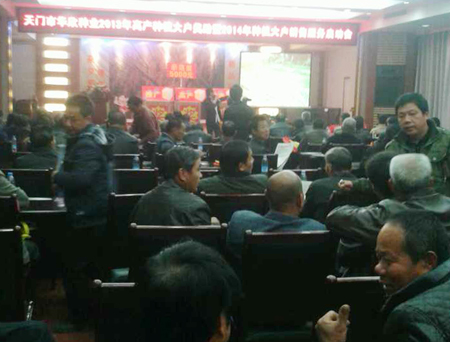 天門(mén)代理商何三華向大戶(hù)傳達(dá)了公司2014年的獎(jiǎng)勵(lì)政策并承諾做到品種到位,培訓(xùn)到位,服務(wù)到位,指導(dǎo)到位,之后,農(nóng)戶(hù)們紛紛開(kāi)始預(yù)訂以廣兩優(yōu)1128為主的隆平產(chǎn)品。