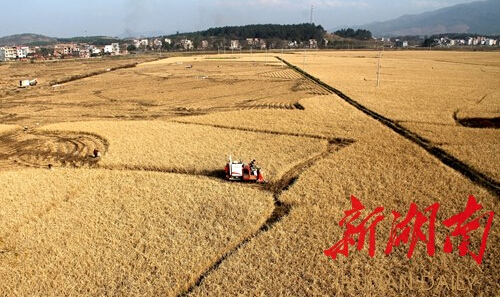 1月3日,寧遠(yuǎn)縣水市鎮(zhèn),村民在收割晚稻。收割的晚稻,水分在14%左右,可以在田間直接賣給米廠碾米。近兩年,水市鎮(zhèn)農(nóng)民探索出“禾上曬谷、延后收割”的種稻模式。他們種植的水稻品種“深優(yōu)9586”可推遲到“冬至”前后收割,每畝節(jié)約曬谷、搬運(yùn)人工費(fèi)約90元。2015年,水市鎮(zhèn)“禾上曬谷、延后收割”晚稻推廣種植面積達(dá)1.2萬(wàn)畝。