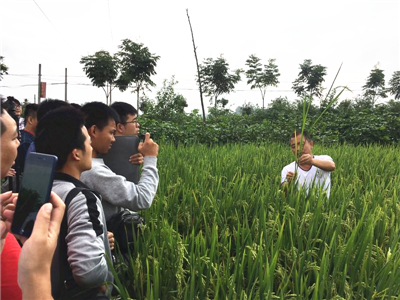 9月5日上午,在周老師的帶領(lǐng)下,參訓(xùn)人員整裝出發(fā)一同前往隆兩優(yōu)534示范田觀摩學(xué)習(xí)。為了讓大家學(xué)以致用,解決工作中實(shí)踐問題,周老師特別針對今年七月份的高溫情況做了詳細(xì)的講解,他指出,這種情況下在跟蹤服務(wù)的過程中,在高溫時(shí)段提醒農(nóng)戶深水孕穗灌漿和后期噴施磷酸二氫鉀非常關(guān)鍵,因?yàn)檫@對后期二次灌漿至關(guān)重要,也在很大程度上影響結(jié)實(shí)率。針對因大風(fēng)大雨天氣導(dǎo)致的倒伏現(xiàn)象,他強(qiáng)調(diào),在跟農(nóng)戶溝通的過程中要注重多角度分析問題、直面問題,為農(nóng)戶提供合理可靠的解釋。同時(shí),了解病蟲害、為農(nóng)戶及時(shí)開方子很重要,我們必須積累實(shí)戰(zhàn)經(jīng)驗(yàn),真正把腳踩到田間泥巴里去,彎下腰,仔細(xì)看,多溝通學(xué)習(xí),才能拉近與農(nóng)戶的距離。