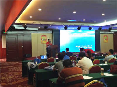會議首先由技術(shù)服務部劉老師詳細介紹了晶兩優(yōu)華占適應性廣、抗病性強、米質(zhì)優(yōu)、抗倒伏、高產(chǎn)穩(wěn)產(chǎn)等特點,并講解了晶兩優(yōu)華占在信陽地區(qū)歷年表現(xiàn)情況及主要栽培技術(shù)。劉老師指出:好品種加科學栽培技術(shù)是獲得高產(chǎn)和更高銷售成績的保證。