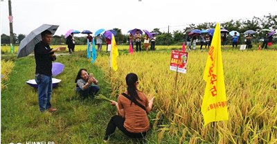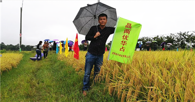 上午8點,在隆平品牌西南區(qū)域舒經(jīng)理的組織下,大家一同前往觀摩田塊。盡管大雨傾盆,但大家的熱情絲毫不減。為了讓大家能更清楚的了解晶兩優(yōu)華占,冒著大雨,舒經(jīng)理親自到田間,教大家如何進(jìn)行品種優(yōu)勢比較。舒經(jīng)理從分蘗、抗倒性、抗稻瘟病、抗稻曲病、結(jié)實率五個方面進(jìn)行了詳細(xì)講解,并進(jìn)行了同田比較,讓參會人員對品種的優(yōu)勢有了清晰的了解。
