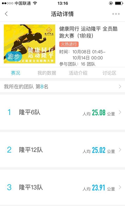年輕人是隆平的未來,健康才有未來!為倡導健康隆平的理念,提高員工的目標意識,增強員工之間的溝通交流,營造健康生活,快樂工作,全員健身的氛圍,9月28日,在公司行政人事中心和工會的聯(lián)合組織下,籌備已久的“健康同行 運動隆平”第一屆酷跑大賽正式拉開序幕,迅速在公司內(nèi)部掀起了一股健身運動熱潮。 為將分散在各地的員工聯(lián)系起來,讓團隊活動更好地融入到所有員工的日常生活中,此次酷跑大賽分為團隊賽和個人賽同時進行,比賽提供的現(xiàn)金大獎、運動大禮包及父母雙人免費體檢套餐,讓員工在鍛煉身體,增強體魄的同時,加強交流,還能盡一份孝心,全方位調(diào)動了員工參與運動的積極性,吸引了更多員工加入活動。 10月8日凌晨,在大家的翹首期待中,此次酷跑大賽三大活動創(chuàng)建成功,比賽正式拉開序幕。此次比賽采取系統(tǒng)隨機分組的形式進行,為不同區(qū)域和不同部門的同事溝通交流提供了溝通交流的平臺,得到了大家的廣泛關注和積極參與。比賽分組完成后,各分隊迅速反應,組建自己的團隊群,熱烈討論,制定詳細的參賽計劃和戰(zhàn)略方針,為團隊奪冠出謀劃策,很快便建立了深厚的友誼。 比賽期間各分隊更是你追我趕,競爭激烈。為充分調(diào)動團隊成員積極性,讓全員參與活動,各分隊各出奇招,設置團隊目標,團隊隊員目標,并相互督促,全員一起運動是各大強大首推的奪冠策略。目標意識、團隊意識、健康意識更是隨著活動的開展深入人心。“今天,你跑步了嗎”,“你跑了多少公里”,“X隊跑起來”,“你的目標完成了嗎”等等都成了大家熱聊的話題。全員健身,一起運動不僅成為一種共識,還逐漸成為更多人的行動。 經(jīng)過6天時間的緊張角逐,截止目前,共有175位員工加入比賽,全員共完成公里數(shù)5454.82公里,完成步數(shù)近1000萬步,個人累計計步數(shù)最高達198733步,6名選手累計步數(shù)遠超10萬步,個人跑步累計公里數(shù)最高達82.69公里,11名選手跑步累計完成的公里數(shù)達到30公里以上。 10月14日零點,酷跑大賽第一階段比賽即將結束,進入了緊張的沖刺階段,距離比賽結束僅剩幾個小時,第一階段最佳團隊的爭奪卻更加激烈,隆平6隊、隆平12隊及隆平13隊以微弱差距領跑,酷跑大賽的第一個大獎將花落誰家,我們拭目以待。 10月15日,酷跑大賽第二階段比賽正式開賽,更多精彩敬請期待。