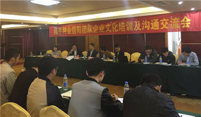 2017年10月20日,隆平種業(yè)信陽團隊企業(yè)文化培訓(xùn)及溝通交流會在信陽順利召開。公司運營副總經(jīng)理楊文星先生、人事財務(wù)總監(jiān)楊震宇先生、隆平品牌負(fù)責(zé)人張一明先生、晶隆品牌負(fù)責(zé)人劉俊先生、營銷支持部相關(guān)人員出席了本次會議,公司信陽團隊三十余人參加了本次會議。