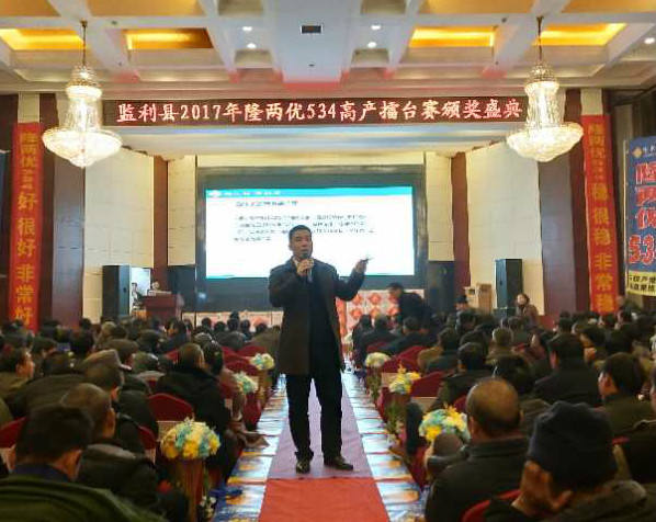 為獎(jiǎng)高產(chǎn)、提信心、促訂購(gòu),監(jiān)利縣第二屆“隆兩優(yōu)534”高產(chǎn)擂臺(tái)賽頒獎(jiǎng)盛典于1月15日盛大召開,本次會(huì)議得到了參會(huì)農(nóng)戶的熱情參與,效果空前。 頒獎(jiǎng)典禮開始,監(jiān)利縣農(nóng)業(yè)局高級(jí)農(nóng)藝師方小兵上臺(tái)致辭,為大家詳細(xì)介紹了隆兩優(yōu)534的品種特性,讓大家對(duì)隆兩優(yōu)534的優(yōu)勢(shì)有了更加清晰的了解。 緊接著,監(jiān)利縣第二屆“隆兩優(yōu)534”高產(chǎn)擂臺(tái)賽頒獎(jiǎng)典禮正式開始,現(xiàn)場(chǎng)首先公布了本次高產(chǎn)擂臺(tái)賽二等獎(jiǎng)獲獎(jiǎng)名單,讓氣氛頓時(shí)熱烈起來。 然后,隆平品牌監(jiān)利區(qū)域負(fù)責(zé)人王經(jīng)理詳細(xì)介紹了隆兩優(yōu)534在監(jiān)利地區(qū)的銷售和表現(xiàn)情況,并細(xì)致分析了其巨大的優(yōu)勢(shì),增強(qiáng)了大家的信心。 接著,隆平品牌湖北區(qū)域負(fù)責(zé)人盧總上臺(tái)發(fā)言,他向大家講述了這次高產(chǎn)擂臺(tái)賽的目的和意義,他指出,隆兩優(yōu)534是隆平的主力品種,具有極其明顯的優(yōu)勢(shì),大家可以放心種。 隨后,典禮揭曉了特等獎(jiǎng)獲獎(jiǎng)?wù)?,來自黃歇口的吳立恒以2411.7斤每標(biāo)準(zhǔn)畝的產(chǎn)量奪得了此次高產(chǎn)擂臺(tái)賽4999元現(xiàn)金大獎(jiǎng)。 在一片歡歌笑語(yǔ)中,此次高產(chǎn)擂臺(tái)賽頒獎(jiǎng)盛典順利落下帷幕!憶17崢嶸歲月,邁步18從頭越,2018,我們將雄關(guān)漫步從頭越,為農(nóng)戶搞好服務(wù),為造福更多人,取得更大的成績(jī)而努力。 分享交流環(huán)節(jié)邀請(qǐng)了優(yōu)秀零售商代表宋總和大家一起分享他與隆兩優(yōu)534不得不說的故事,優(yōu)秀種植戶代表則分享了他的種田選種經(jīng)驗(yàn),代表們的分享極具參考意義,讓大家深受啟發(fā)。